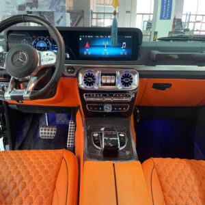 Questo aggiornamento è tipicamente richiesto dai proprietari che apprezzano l’estetica classica della Classe G, ma desiderano comfort moderni come display più grandi, indicatori digitali, connettività migliorata e materiali di qualità superiore. Gli elementi comuni includono la sostituzione del cruscotto analogico con un quadro strumenti digitale, l’installazione del sistema di infotainment COMAND Online o MBUX, il pannello di controllo HVAC aggiornato, la console centrale ridisegnata e l’integrazione di nuovi design dei sedili o finiture dei rivestimenti.