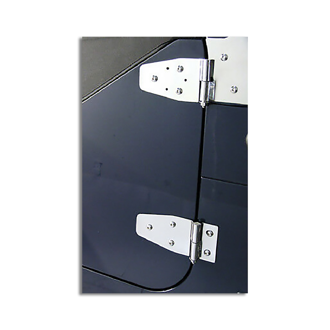 Set di cerniere in acciaio inox lucidato a specchio per le porte in ferro. Set di 4 pezzi.