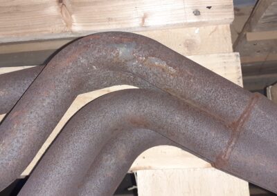 1964-1973 Mustang/Cougar, 1966-1973 Falcon/Fairlane/Torino/ Ranchero/Cyclone/Montego, 1970-1974 Maverick, 1966-1969 Comet: 255-302W, 67-73 Mustang/Fairlane/Cougar: 351W, Dimensioni tubo 1-5/8″ O.D. x 28″, Dimensione collettore 3″ O.D., Lunghezza collettore 8″.