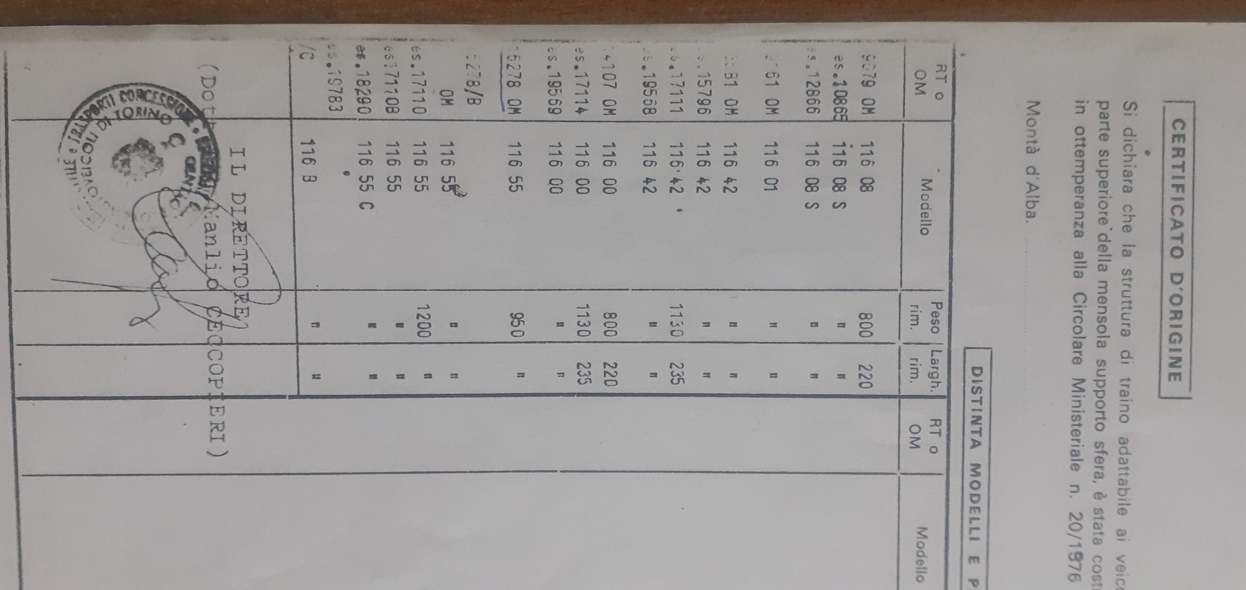 Documento per omologare gancio traino. Il documento viene fornito con la etichetta da attaccarsi al gancio traino.