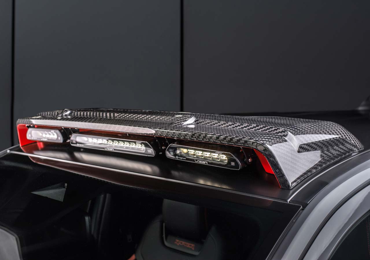 – X-Works carbon roof light equipped with Lazer Linear Standard LED lights (1 x 12, 2 x 6)