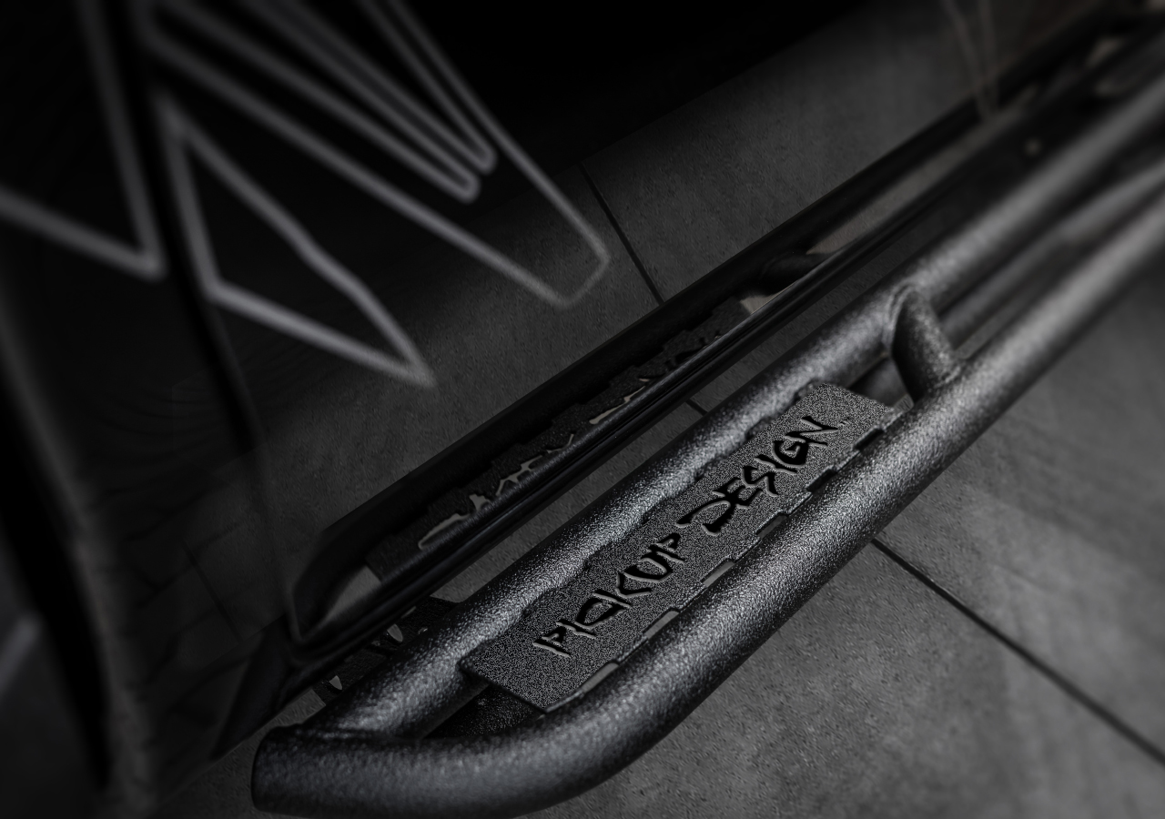 Robust and tough Terrain side steps are both a functional solution and a stylish add-on. Fancy openings and the industrial design of the steps make the vehicle visually attractive.
